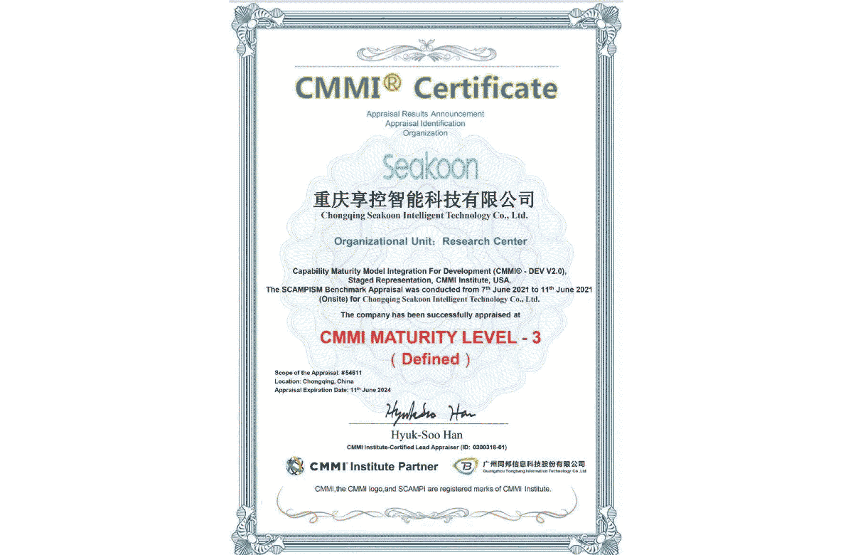 獲CMMI認證證書
